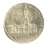 100 шиллингов — Здания и Олимпийская эмблема. XII зимние Олимпийские Игры, Инсбрук 1976. (Коллекционная монета) 1975