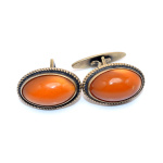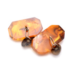 Запонки со вставкой из янтаря. Серебро 875 пробы. Размер 3×1,5 см. 8,26 г
