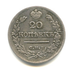 20 копеек — Орел 2 типа. Корона меньше 1826 СПБ НГ