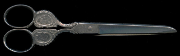 Ножницы коронационные с профилями Николая 2 и Александры Федоровны 19 век. 18×6 см, клеймо (Российская Империя)
