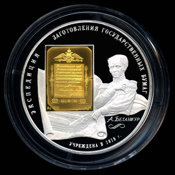 25 рублей — 190-летие Федерального государственного унитарного предприятия «Гознак» 2008 СПМД. Вставка — золото 999* 4,66 гр. С сертификатом, в коробк…