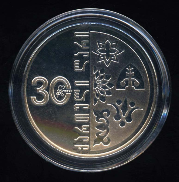 5 лари — 30 лет Грузинскому лари. 2025. В капсуле, с сертификатом. В блистере (Грузия)