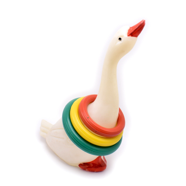 Игрушка винтажная «Гусь-кольцелов». Пластмасса. Размер 34×20 см (СССР)