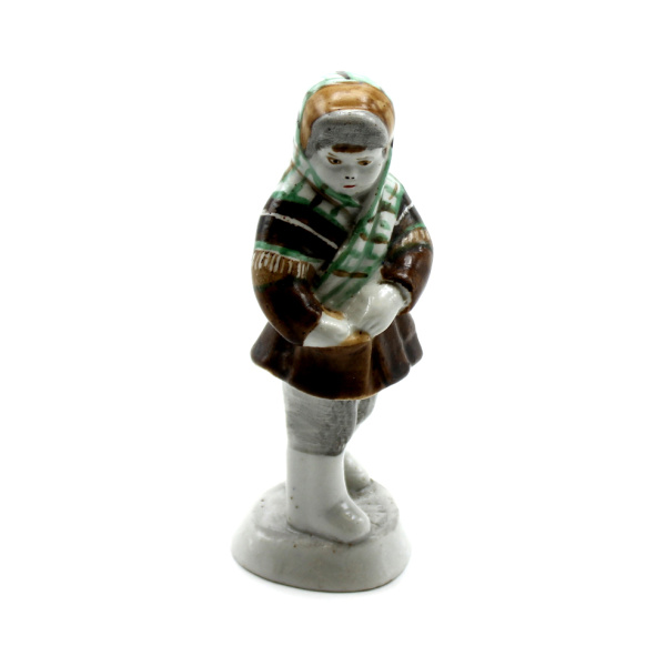 Статуэтка укутыш-девочка блокадница Бронницы. фарфор. ⌀ 4,5 см. без дефектов, высота 12 см 1940−е 1940-е (СССР)
