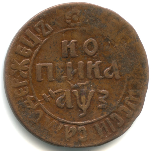 1 копейка — Петр Алексеевич Романов, ГК-1928 1702. В холдере (Русское царство)