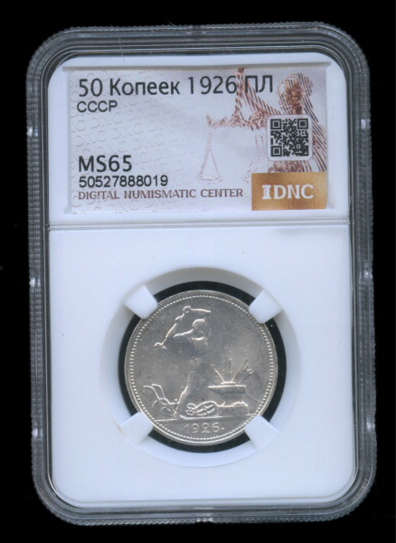 Полтинник — Молотобоец. Большая голова 1926 ПЛ. В слабе. MS 65 (СССР)