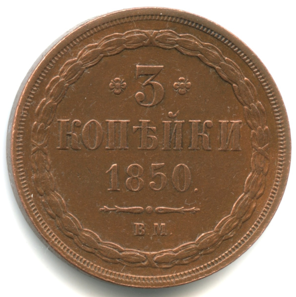 3 копейки — Орел 1849 г 1850 ВМ. Кабинетная патина (Российская Империя)