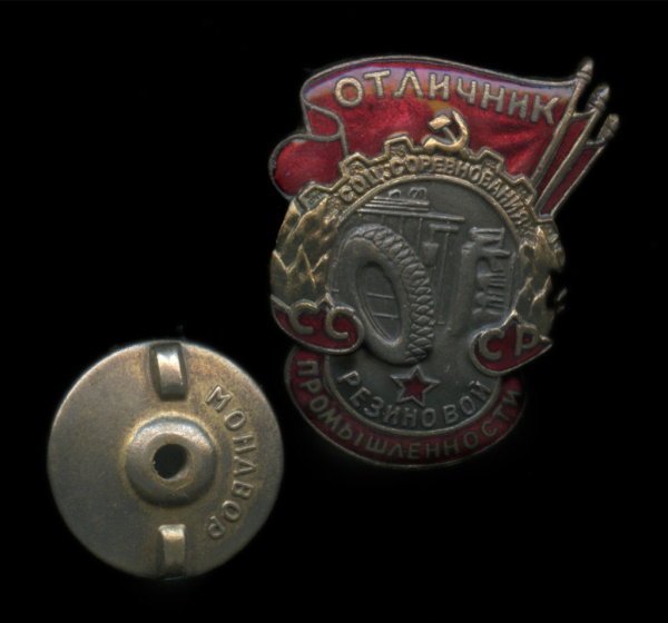 Знак «Отличник резиновой промышленности». Крепление: винт. Тяжелый, эмаль (СССР)