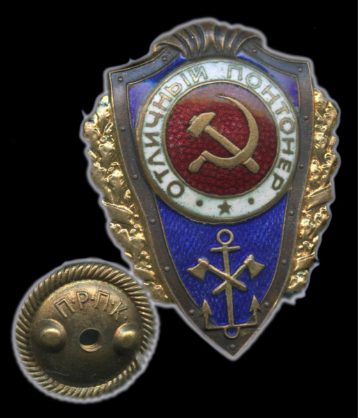 Знак «Отличный Понтонер». Крепление: винт. Тяжелый, эмаль (СССР)