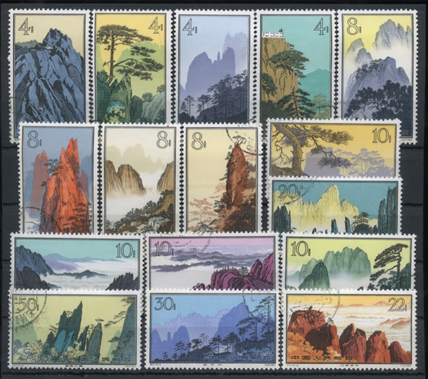 Серия гашёных марок «Горные пейзажи Хуаншань» 16 шт, полный комплект, металлография, чистый клеевой слой, очень редкая. стоимость по каталогу = 258 US…