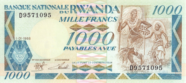 1000 франков (Pick: # 21) 1988 (Руанда)