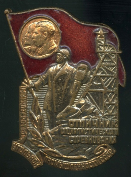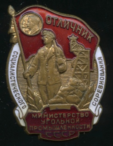 Знак «Знак Отличник соцсоревнования министерства угольной промышленности СССР». Крепление: винт. Тяжелый, эмаль (СССР)