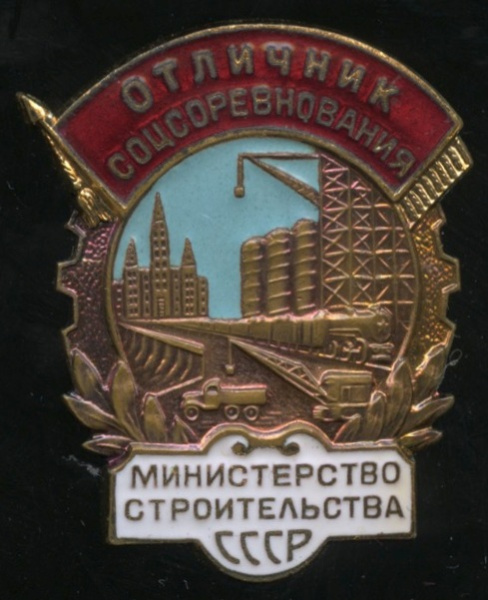 Знак «Знак Отличник соцсоревнования Министерство строительства СССР». Крепление: винт. Тяжелый, редкий, эмаль (СССР)
