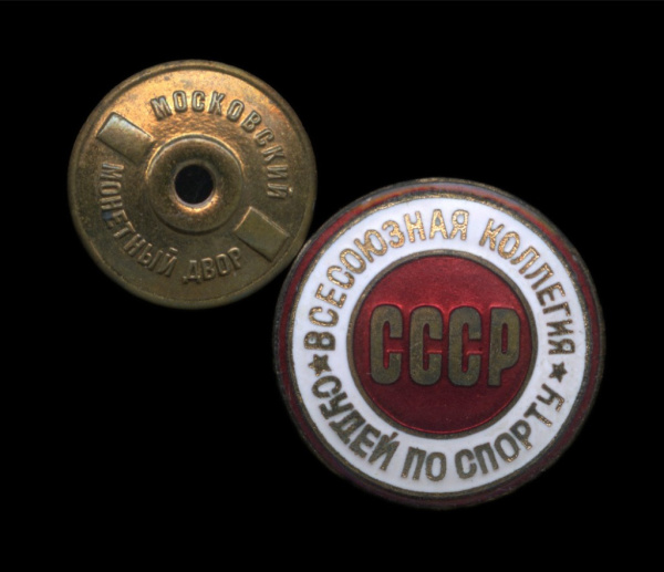 Знак «Всесоюзная коллегия судей по спорту». ММД. Крепление: винт. Тяжелый, эмаль. Латунь, эмаль (СССР)