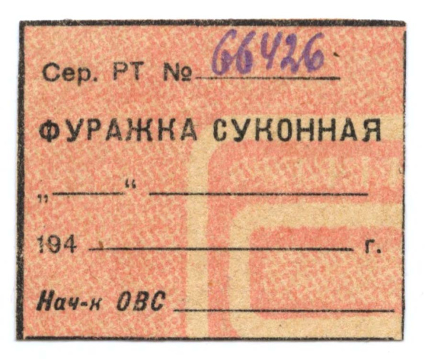 Талон на получение военного имущества — Фуражка суконная 1945 (СССР)