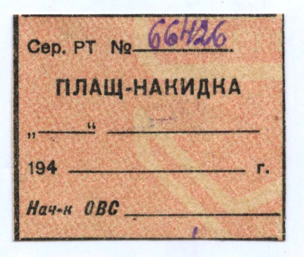 Талон на получение военного имущества — Плащ-накидка. 1945 (СССР)