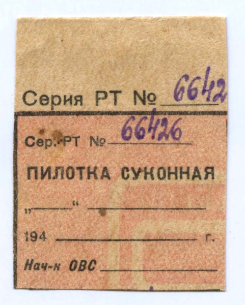 Талон на получение военного имущества — Пилотка суконная 1945 (СССР)