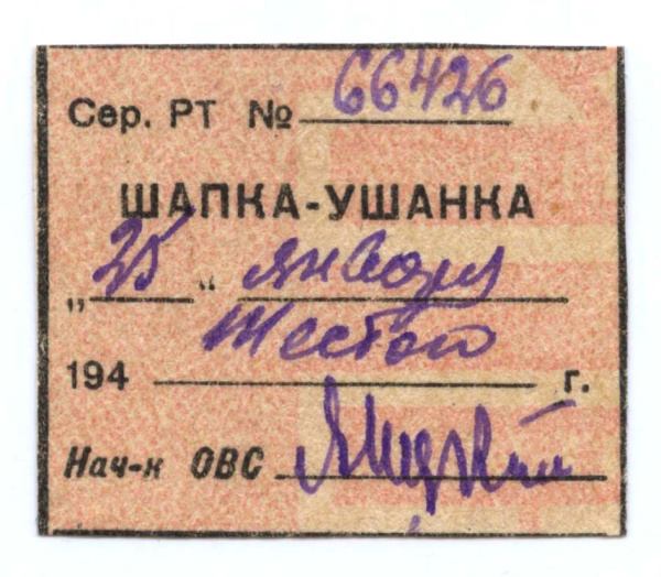 Талон на получение военного имущества — Шапка-ушанка 1946 (СССР)