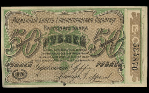 50 рублей — Елисаветградское Отделение Народного Банка 1920 (Россия: Гражданская война)