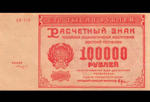 100000 рублей — Нарком фин. Крестинский. Солонинин 1921 - (РСФСР)