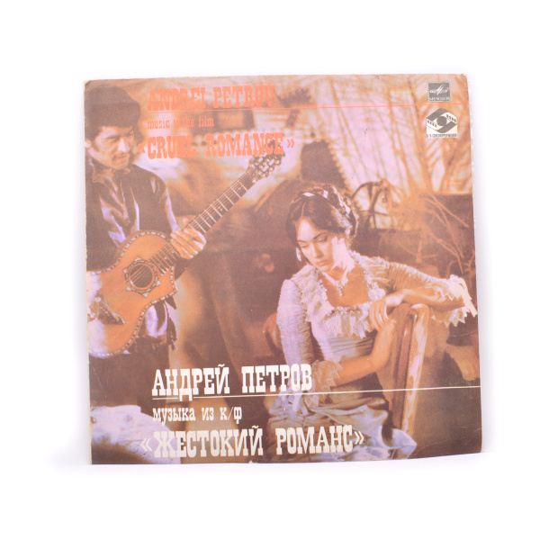Пластинка виниловая «Андрей Петров. Музыка из к/ф «Жестокий романс». Мелодия. 33⅓ об/мин, стерео. Типоразмер: 12″ «Гигант» (СССР)