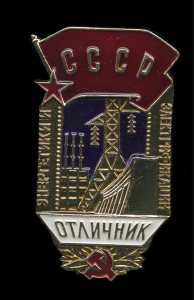 Знак «Отличник энергетики и электрификации СССР». ЛМД. Крепление: булавка. Тяжелый, эмаль (СССР)