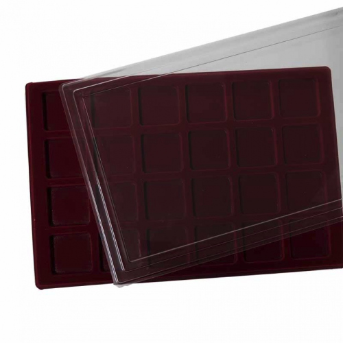 Планшет с крышкой для монет на 24 ячейки 46*46мм. Размер 330×220×10 мм