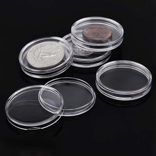 Капсулы для монет 5 штук. Новые в упаковке. ⌀ 30 мм. Монеты на фото — для примера