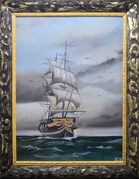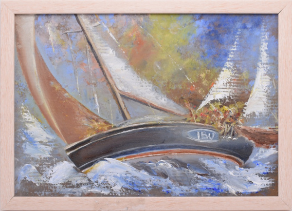 Картина «Яхта в регате». Автор: Галина Гусева. Масло, картон. Размер 21×30 см