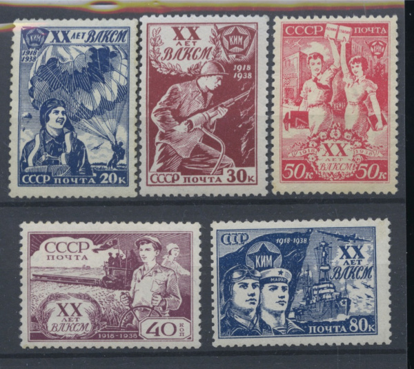 Лот марок: серия почтовых негашеных марок (полная — 5 марок) «20-летие ВЛКСМ» -**, стоимость по каталогу Загорского ред. 2023. — 11000 руб. для **. со…