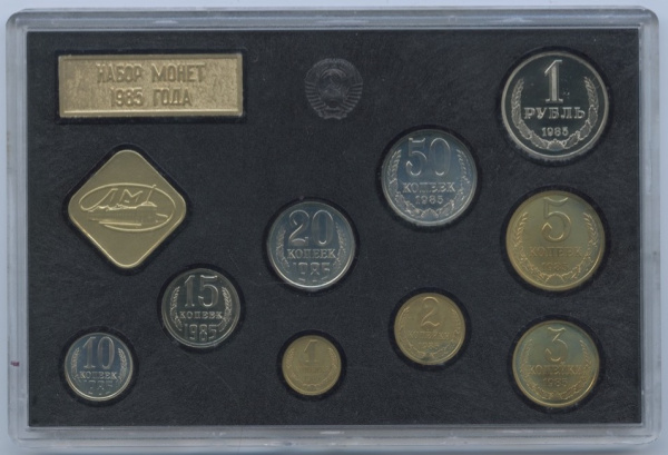 Годовой набор монет СССР 1985 г. Очень редкий. 1985 ЛМД. В блистере, штемпельный блеск. В банковской упаковке Монетного Двора (СССР)