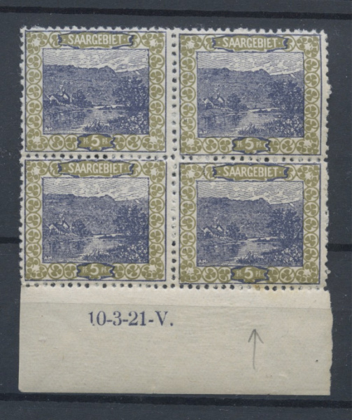 Квартблок с нижним полем. Оккупация СААР. Чистый, без наклеек и следов. 1921 г (Саар)