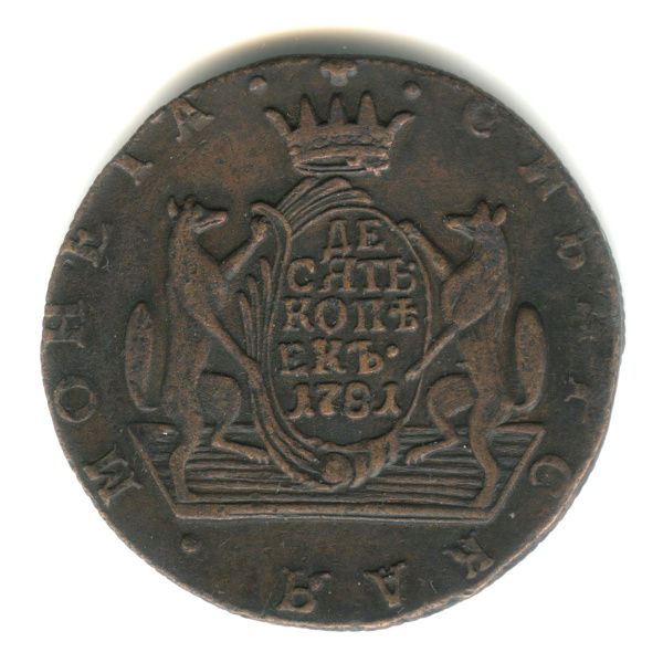 10 копеек — Сибирская монета 1781 КМ (Российская Империя)
