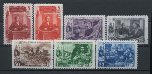 Серия негашёных марок «Международный женский день 8 марта» 7 шт, растр КВ, полный комплект, **. стоимость по каталогу Загорского ред.2023 г. = 1900 ру…