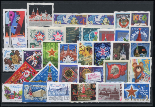 Полная погодовка негашёных марок СССР «С Новым годом!» 33 шт, **. общая стоимость по каталогу Загорского ред.2021 г. = 1345 руб. для ** 1962−1991 1962…