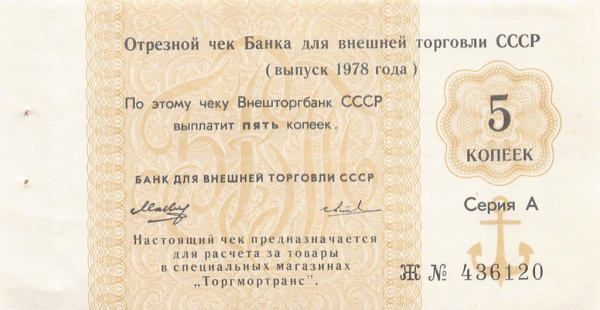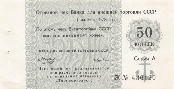 50 копеек. Отрезной чек 1978 (СССР)