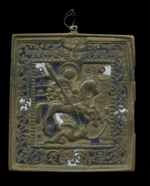 Икона «Георгий Победоносец». Эмали. Бронза. Размер 8×9 см